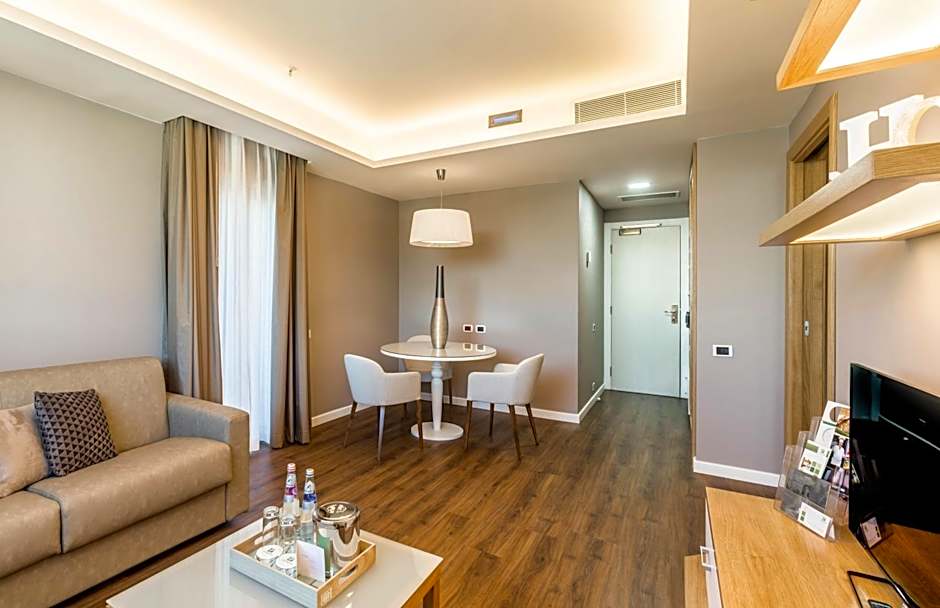 This suite has a sofa, seating area and satellite TV. Wood effect porcelain stoneware floor.